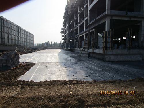 楼穹顶造型施工,填充墙砌筑,地下车库顶板找平层完成。