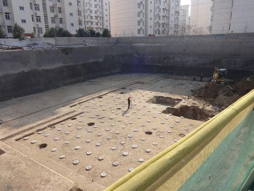 4、万象蓝天2#楼10层钢筋绑扎,脚手架搭设。